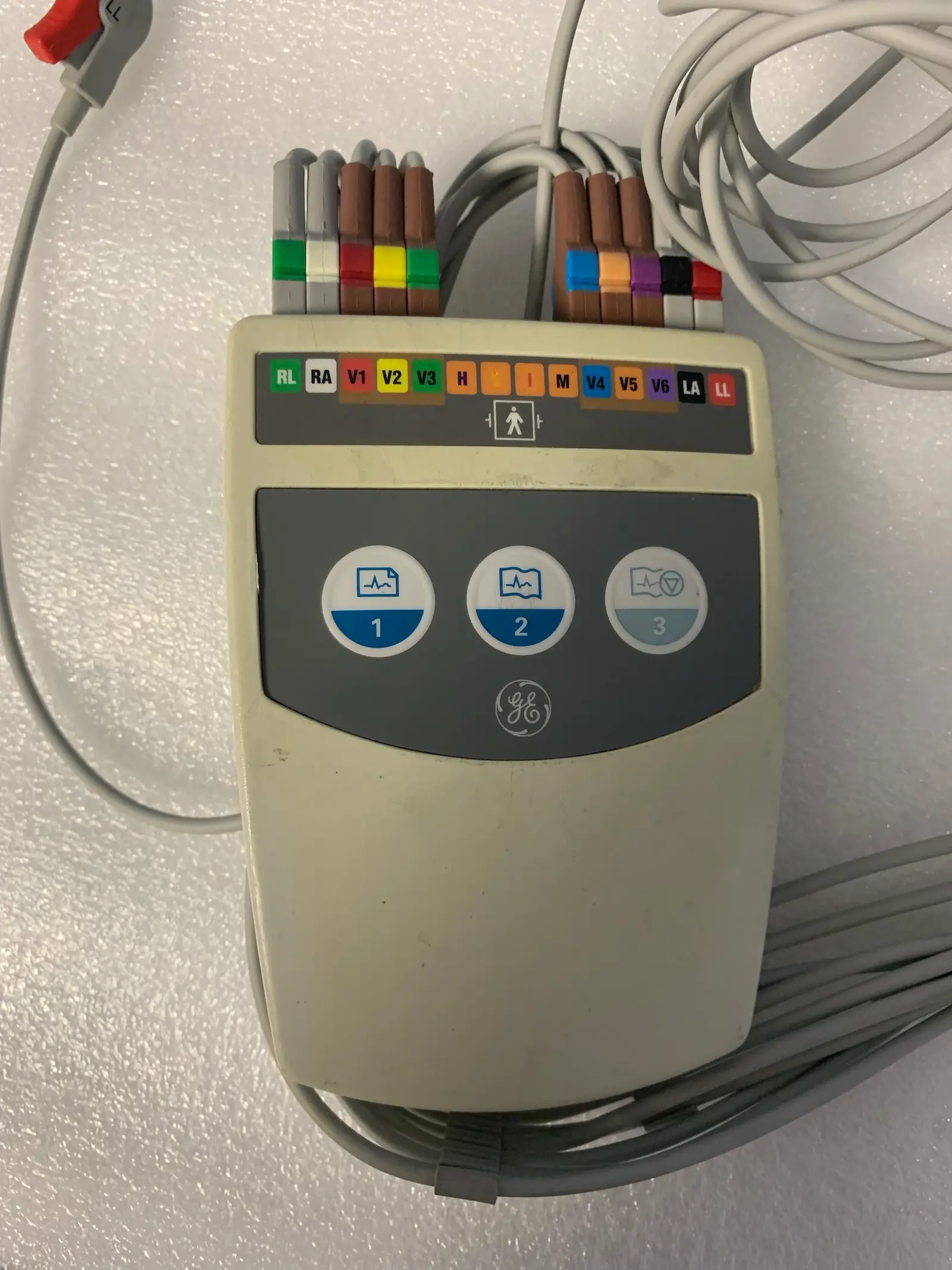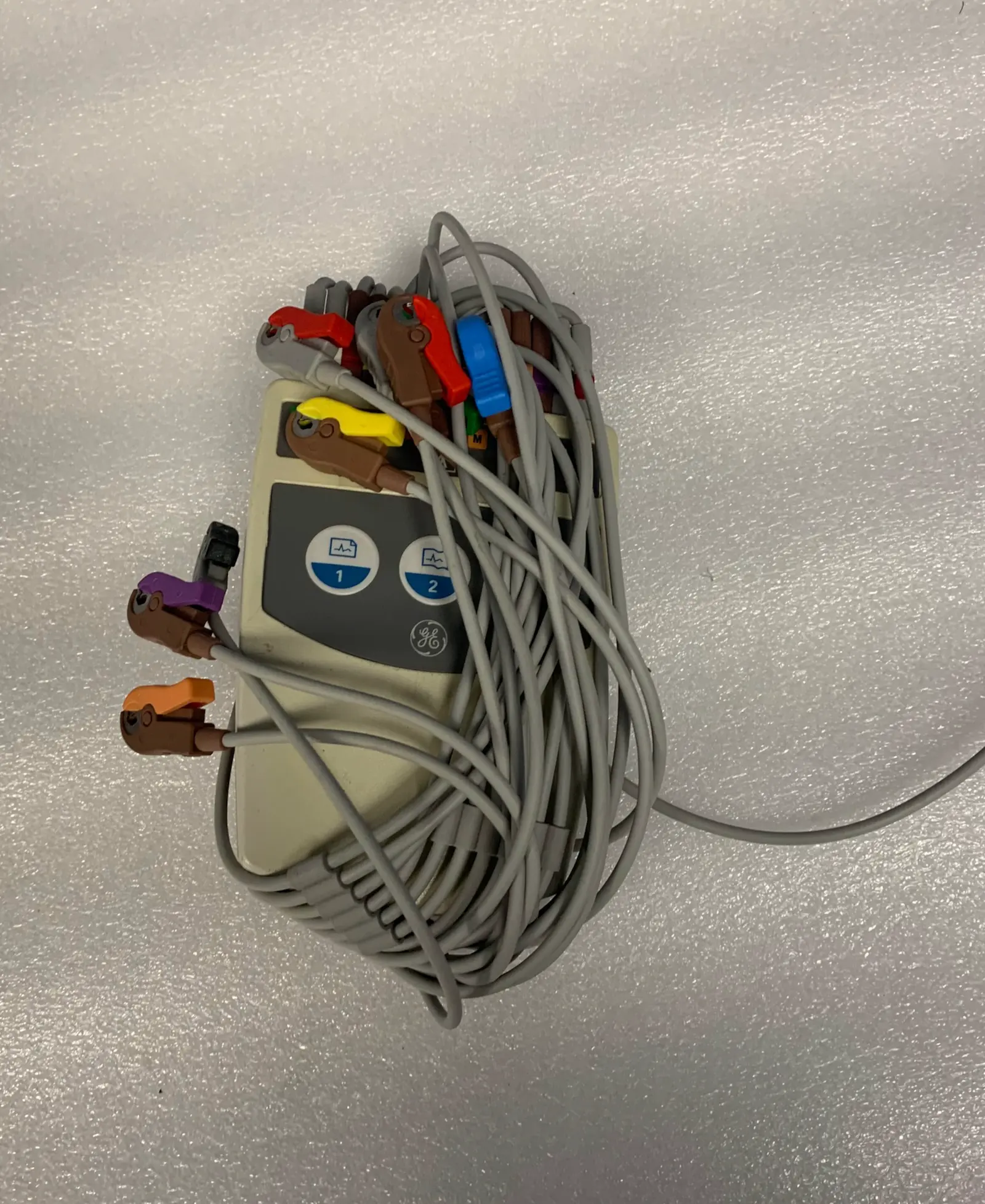 Cables: Includes a full set of multi-coloured ECG lead wires with clip-on electrode connectors.