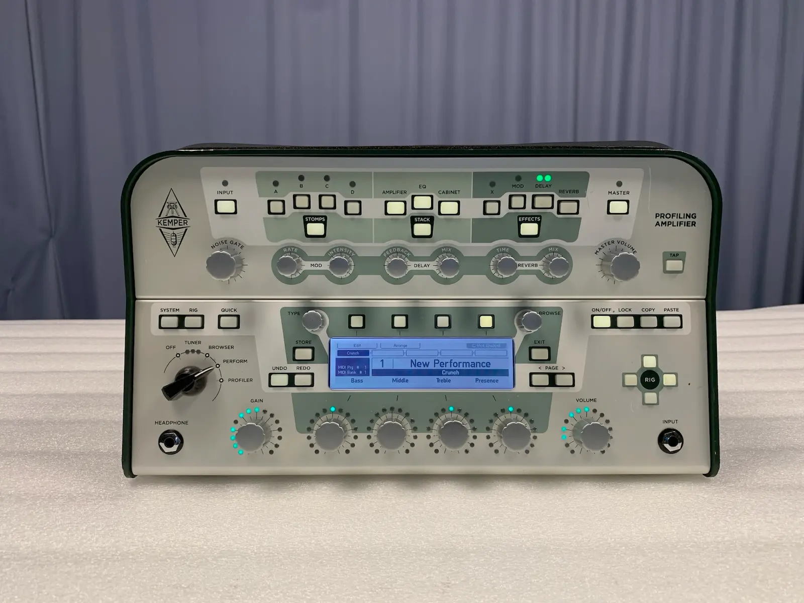Up for sale is a well-maintained Kemper Profiling Amplifier Head in the iconic classic green finish. This version, famous for its ability to perfectly capture the sound and feel of any tube amplifier.