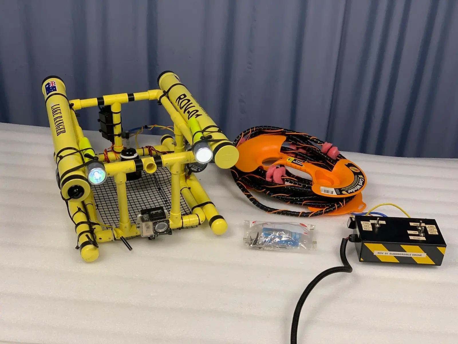 This is a complete, assembled underwater ROV perfect for hobbyists, marine students, or DIY enthusiasts. Built using the proven “Lake Ranger” design, this unit allows you to explore underwater environments, inspect boat hulls, or check fishing spots without getting wet.