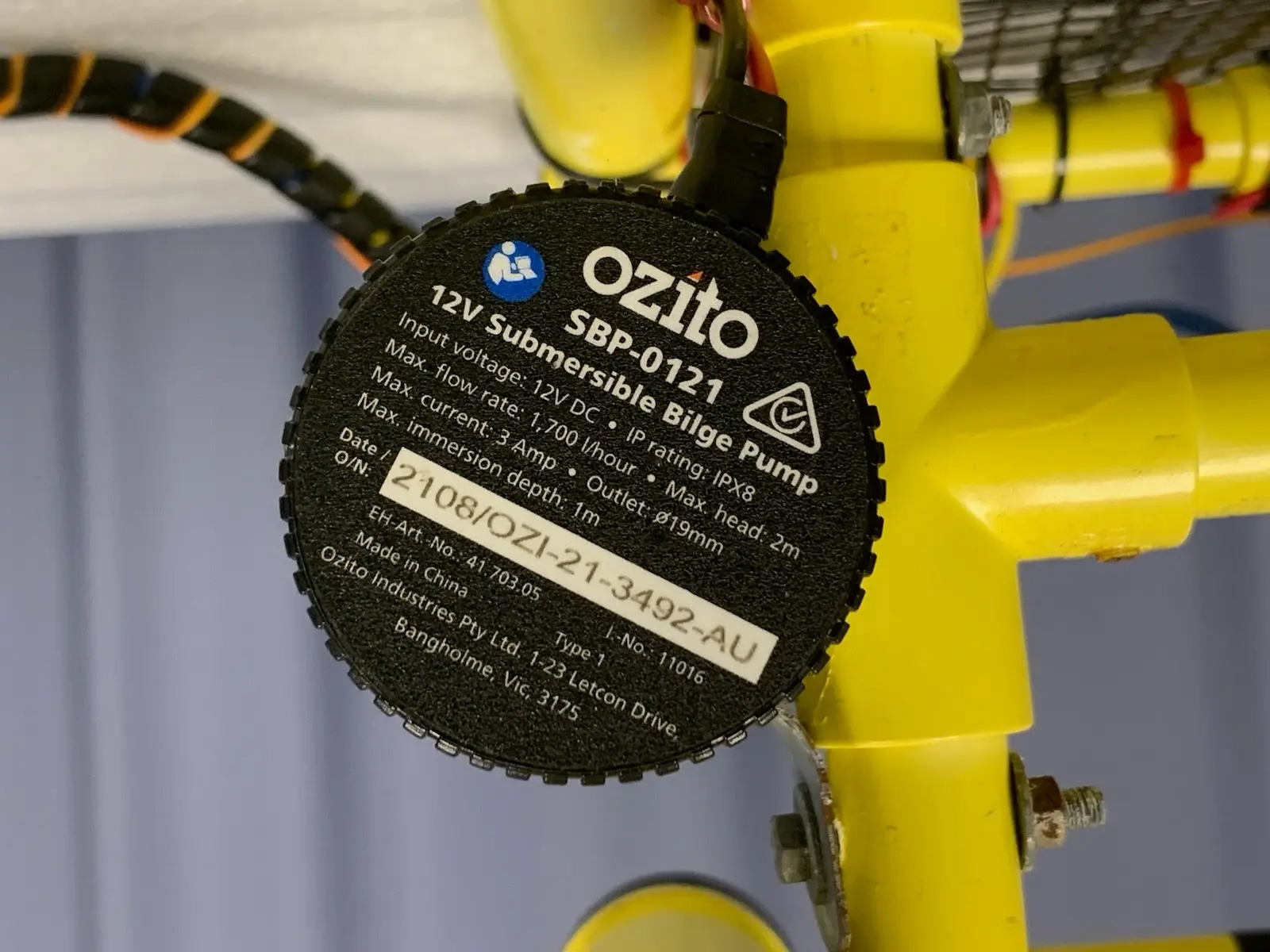 Thrusters: 3 x Modified 12V Ozito Submersible Motors