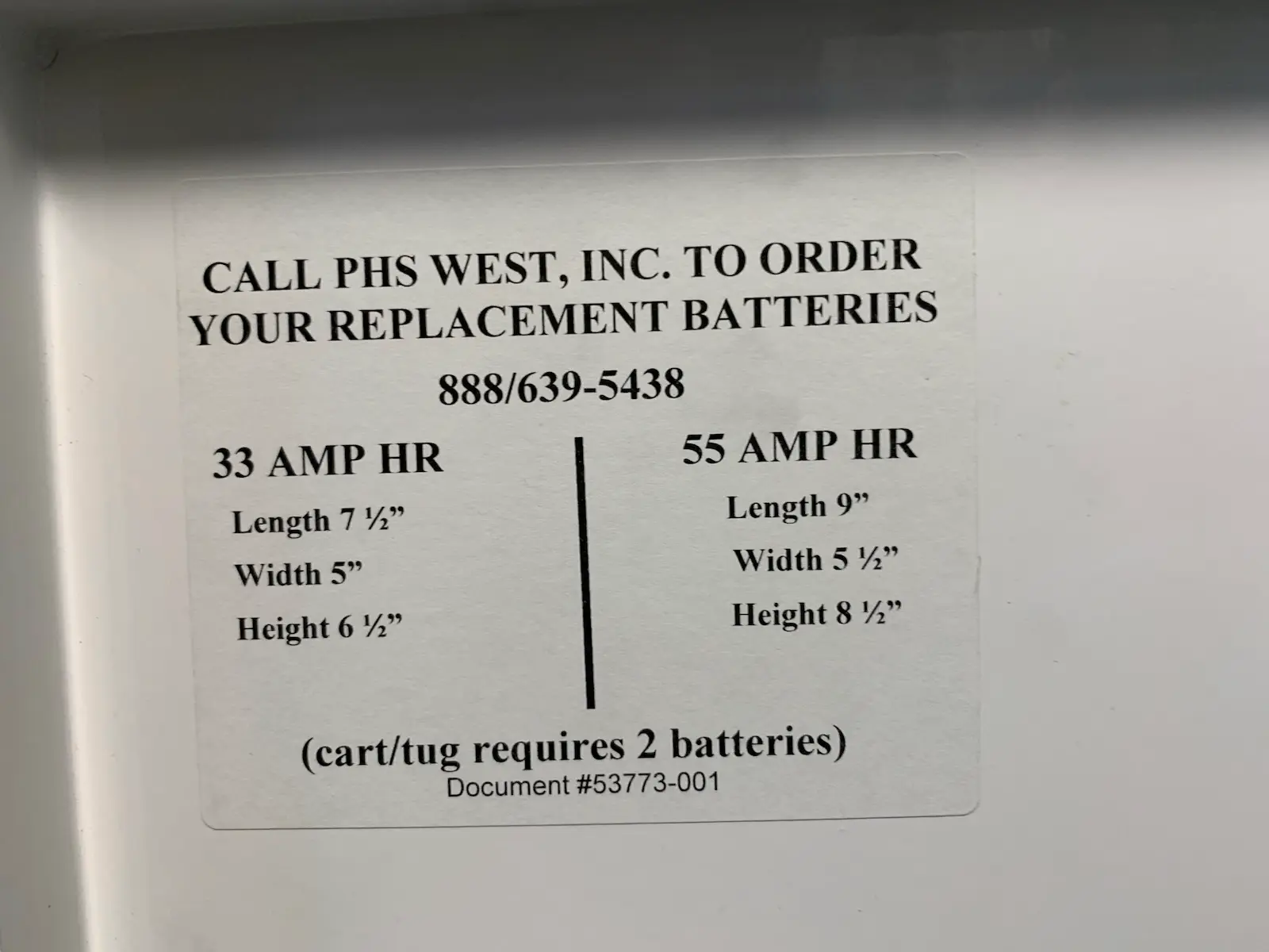 The batteries in the cart no longer hold charge and need replacing prior to power use.