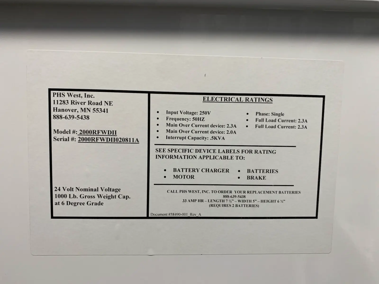 Model: 2000RFWDII
